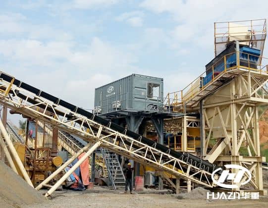 該生產(chǎn)線的破碎過(guò)程:顎式破碎機(jī)中進(jìn)行簡(jiǎn)單的粗碎,然后進(jìn)入圓錐破碎機(jī)中進(jìn)行細(xì)碎,最后進(jìn)入振動(dòng)篩進(jìn)行篩分。合格的石料經(jīng)由皮帶輸送機(jī)進(jìn)入洗選后進(jìn)入成品區(qū),不合格的石料再次進(jìn)入圓錐破碎機(jī)進(jìn)行破碎,從而形成閉路循環(huán),保證石料的質(zhì)量規(guī)格。最后破碎物料顆粒三種規(guī)格 0-5 5-16 16-31.5。