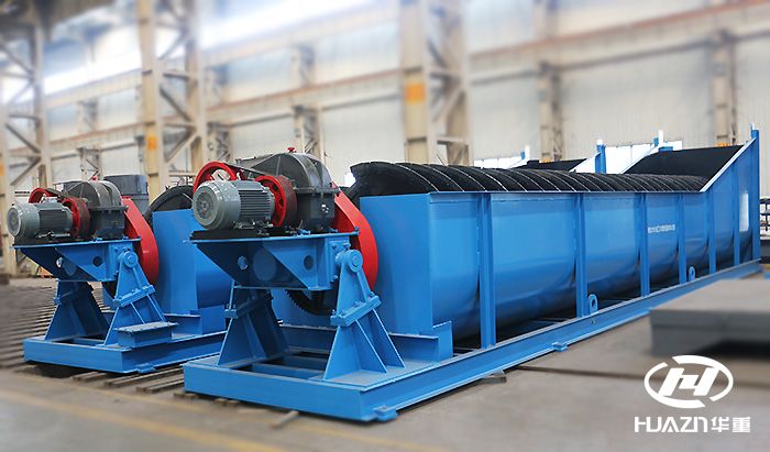 FC/FG系列螺旋分級機主要用于選礦、砂石骨料加工生產中磨礦回路中預先分級和檢查分級以及洗砂作業中的脫泥、脫水等作業。根據螺旋數量可分為單螺旋和雙螺旋兩種;根據螺旋葉片浸入溢流面深淺程度不同可分為高堰式和沉沒式兩種,前者用于溢流粒度為0.83~0.15mm的礦石和洗砂分級,后者用于0.15~0.07mm的礦石和細粉的分級,該系列設備性能可靠,運行穩定,洗砂分級效果好,在砂石骨料系統中用于洗砂可控制石粉流失量。