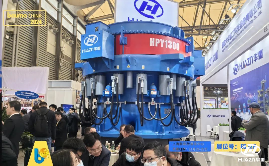 大華重工展位(E6-128)吸引了眾多參觀者紛至沓來,現場人氣爆棚。超大型HPY1300多缸液壓圓錐破碎機,憑借公司卓越的制造能力和工藝,牢牢抓住了客戶們的目光,成為眾人矚目的“吸睛王”。它剛一亮相,便迅速圍攏起大批感興趣的客戶,大家或駐足端詳,或熱烈討論,眼神中滿是認可與贊賞。