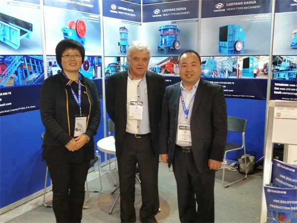 在這次為期6天的展會上,參觀的專業人士絡繹不絕,我們共發放產品資料200余套,展會上我公司共接待來訪客戶200余人,在展會宣傳和交流中客戶對我們推出的具有法國基因的C系列顎式破碎機和BP系列反擊式破碎機尤其感興趣,其它給料機、圓錐式破碎機、制砂機等也有較多關注,另因參加此次展會的客商大多數來自于法國及周邊國家的法語系國家,故我們這次展會也特意邀請我們公司的法國專家路易斯自始至終為我們展會服務,接待來訪很多只講法語的客戶,另外路易斯也邀請了諸多法國的朋友客戶來我們公司的展位參觀交流,通過這次展會,有50多個法國意向客戶,許多客戶都要我們報價,諸多客戶看到洛陽大華和阿特瑞克的合作也很高興,對法國技術+中國洛陽大華制造也很認可。展會還接待了大約15個北非的客戶(突尼斯、阿爾及利亞、摩洛哥和毛利塔利亞)及10多個非洲客戶(多哥、喀麥隆、象牙海岸和塞內加爾)并有詢價,還有一些意大利、塞爾維亞、德國和西班牙客戶等,總之,我們參加這次展會是成功的。