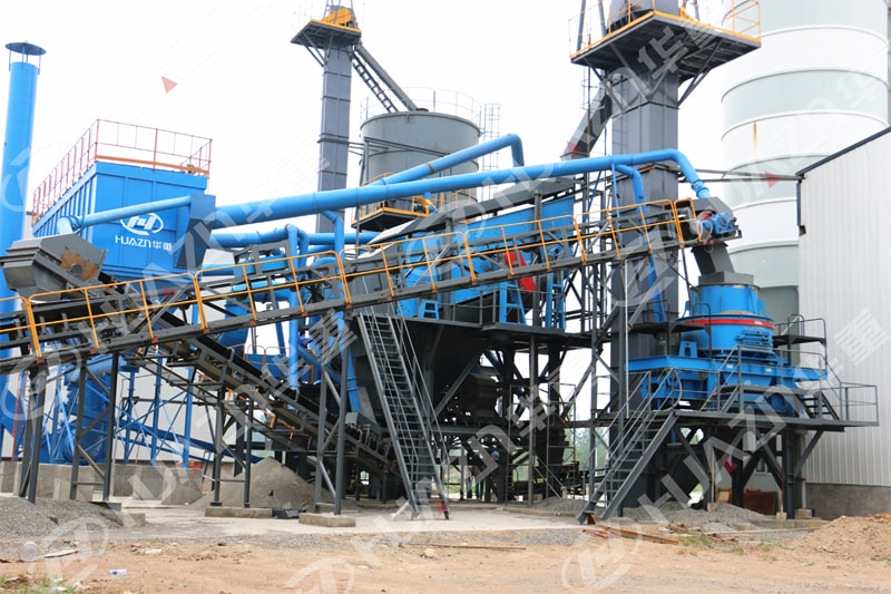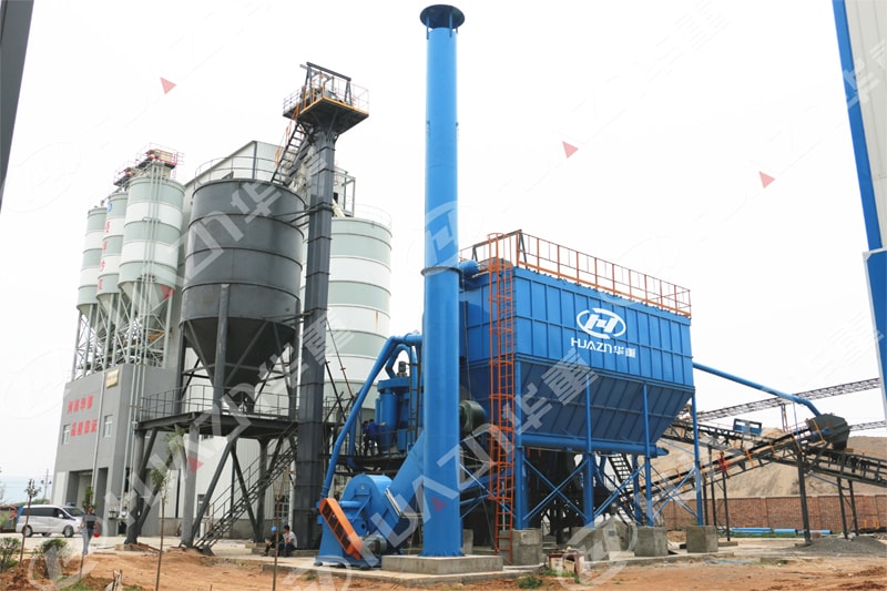 該系統主要用于生產預拌砂漿用細砂,設計產量為50t/h,原料為-30mm以下的碎石,成品砂細度模數2.4-3.0之間可調整,石粉含量控制在5%-15%,系統配置的核心主機設備為洛陽大華生產的PLS1000專用精品制砂機1臺,該設備成品粒形好,粒度穩定,設備使用成本低,維修保養簡單。其它配套主機還有多層細粒篩分機1臺,高效選粉機1套,環保除塵設備1套,斗式提升機3套,粉料罐1套及其它相關計量和輸送設備等。