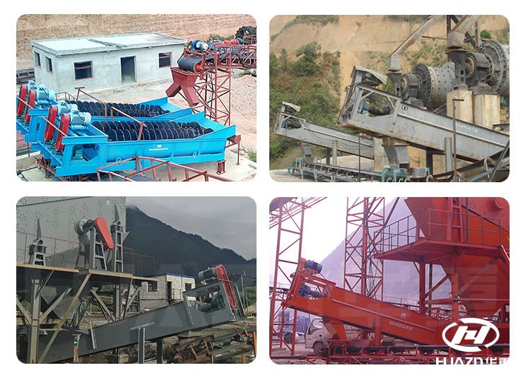 螺旋洗砂設備則是利用螺旋葉片的推進作用清洗泥土,相比輪式洗砂機,螺旋洗砂機洗凈度更高,并且對石料的清洗效果更好。同樣的道理,利用沙、泥、水的不同比重,將砂子提取出來,水和泥順著溜槽流走。