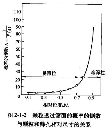 由于篩分過程是許多復雜現象和因素的綜合,使篩分過程不易用數學形式來全面地描述,這里僅僅從顆粒尺寸與篩孔尺寸的關系進行討論,并假定了某些理想條件(如顆粒是垂直地投入篩孔),得到顆粒透過篩孔的概率的公式。