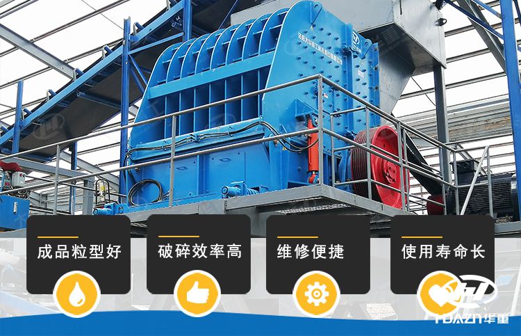 反擊式破碎機進料粒度在進料粒度在600mm以下,成品一般在20-40mm之間任意調節,多用作為二級破碎設備使用,可與整形制砂機搭配使用,組成制砂生產線。