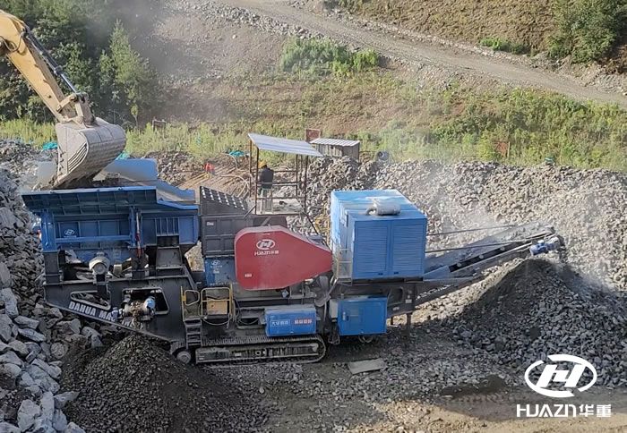 移動式破碎機的整個生產線只需兩臺移動破碎站與若干傳輸帶,而固定式生產線需要場地固定混凝土打樁,非常麻煩,移動式破碎機省去物料運輸環節和基礎設施建設步驟,使得整個生產省時省力又省錢。