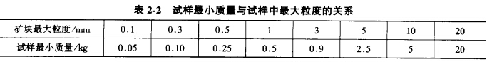 進(jìn)行篩析首先應(yīng)取得有代表性的試樣,為了使試樣有代表性且質(zhì)量又最少,其取樣方法與化 學(xué)分析取樣方法相同。樣品的最小質(zhì)量與試樣中的最大粒度有關(guān),可參照表2-2確定。