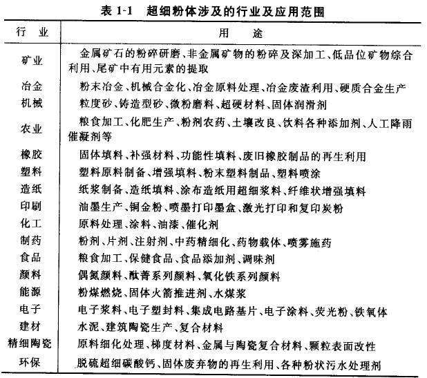 超細粉體工業是多學科的組合,超細粉體幾乎應用于國民經濟的所有部門,表l-l為超細粉體涉及的行業及應用范圍。