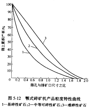 以下各種碎礦機產物的粒度特性曲線,均用相對粒度表示橫坐標,其關系與此處相同。