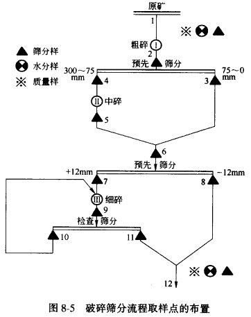 流程考查結(jié)果的分析,是根據(jù)考查過(guò)程中所測(cè)得的數(shù)據(jù)及計(jì)算結(jié)果,對(duì)整個(gè)流程和設(shè)備運(yùn)轉(zhuǎn) 情況進(jìn)行科學(xué)分析,從中發(fā)現(xiàn)問(wèn)題,從而提出解決的方法和合理化建議。以指導(dǎo)現(xiàn)場(chǎng)生產(chǎn),提高 設(shè)備的利用率和各項(xiàng)生產(chǎn)指標(biāo)。由于行選礦廠的碎礦流程不相同,其考查的目的也不—樣,因此 對(duì)考查結(jié)果分析所側(cè)重的方而也就不同,但一般說(shuō)來(lái),包括以下幾個(gè)方面的內(nèi)容: