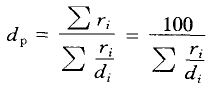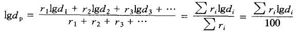 (2)寬級別混合物料的平均粒度。對于這種混合物料,可首先進行篩析,求出粒皮組成后采用統(tǒng)計學(xué)求平均值的方法計算其平均直徑。如已知混合物料中各窄粒級的平均直徑分別為d1、d2、d3、…,其產(chǎn)率分別為r1、r2、r3、…,則該物料的平均粒度可以下列三種方法計算