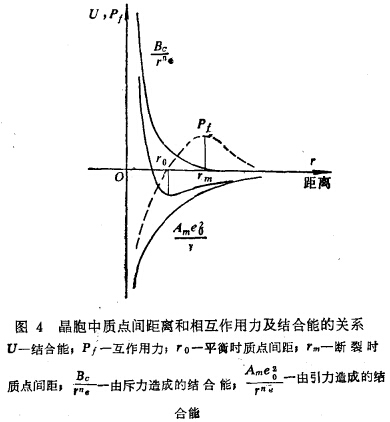 當晶體受到外力作用被壓縮時,r<r0,這時斥力增大超過 引力的增大,剩余的斥力支撐著外力的壓迫;當晶體受到外力作用伸張時,引力的減小少于斥力的減小,多余的引力便抗御著外力的拆散作用。但隨著質點間距離的進一步增加,引力的絕對數(shù)值減小,故伸張到一定程度時,即當之后由于質點間相互作用力Pf不可能再增大,致使晶體抵制不住外力的拉伸而終于被破壞。這就是說,施于晶體上的外力若超過了最大可能的相互作用力時晶體就被支解了。