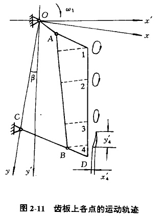 復(fù)擺領(lǐng)式破碎機運動分析機構(gòu)模型如圖2-8所示入點是齒板上的任意點,在直角坐標系xOy中,s點的位移方程為