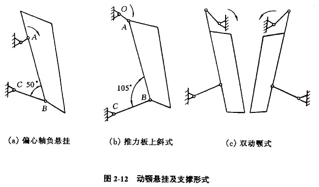 ②將傳統(tǒng)復(fù)擺顎式破碎機的推力板下斜式改為卜斜式,如圖2-12b所示,動顎齒板在壓碎行程的運動方向有一個朝下的分量,有利于破碎物料,促使物料往下排卸,減少堵塞,產(chǎn)量可提高20%一40%,齒板的磨損得到了改善,齒板壽命可提高2—3倍。