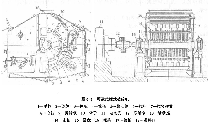 (2)可逆式錘式破碎機的構(gòu)造