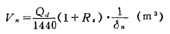 如果磨機每日的處理量為Qd(t/d),磨機內礦漿的液固比為Rs,設礦漿的密度為δn(t/m3),則每分鐘通過磨機的礦漿體積Vn為: