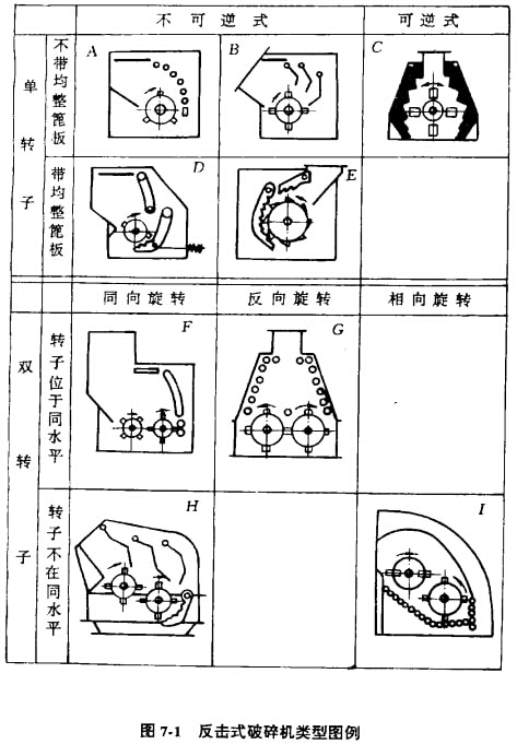 反擊式破碎機技其結(jié)構(gòu)特征,可分為單轉(zhuǎn)子和雙轉(zhuǎn)子兩種類型,其詳細(xì)類型見圖7-1。