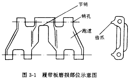 在考慮提高零件使用壽命時(shí),應(yīng)首先從改進(jìn)零件的結(jié)構(gòu)設(shè)計(jì)開始。不合理或不完美的設(shè)計(jì)往往會(huì)使磨損大大加劇,使用壽命明顯降低。反之,有時(shí)在結(jié)構(gòu)設(shè)計(jì)上稍作改進(jìn),往往會(huì)很容易或明顯地提高零件的耐磨性。改善零件結(jié)構(gòu)的設(shè)計(jì)方法是:應(yīng)用摩擦學(xué)知識(shí),主要是磨料磨損規(guī)律知識(shí),合理改變零部件結(jié)構(gòu)設(shè)計(jì),即通過對(duì)磨損零件摩擦學(xué)系統(tǒng)分析以后,從改善磨損條件出發(fā),適當(dāng)改變零件的幾何形狀、配合方式以及加大其工作部分尺寸,或用特殊的工藝方法。這些參數(shù)改變后,既能滿足設(shè)備正常運(yùn)轉(zhuǎn),又不致增加過多消耗,使耐磨性大大提高。這已經(jīng)被許多應(yīng)用實(shí)例所證實(shí)。例如:50年代,拖拉機(jī)履帶板都是五孔型履帶板.后改為七孔履帶板,將易磨損部位的節(jié)銷厚度適當(dāng)增加,壽命比五孔的提高了,得到普遍采用,如圖3-1所示。
