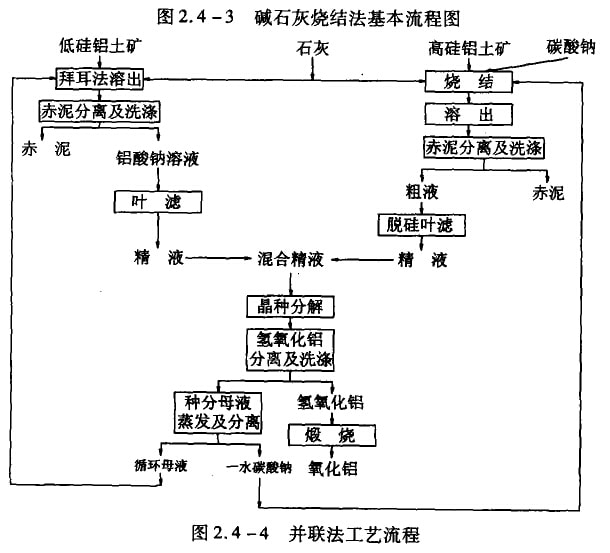 除上述串聯法和并聯法之外,還有所謂的混聯法,它是將拜耳法和同時處理拜哥法赤泥與低品位鋁土礦的燒結法結合在一起的聯合法。混聯法是處理高硅低鋁原料的有效方法。