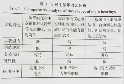 通過對3種不同的主軸承進行對比分析,總結了各自的優缺點,提出了主軸承的選用原則,并結合生產實際分析了這3種主軸承的適用情況,為礦用磨機主軸承的選用提供借鑒。