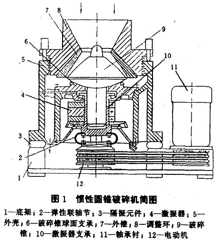 慣性圓錐破碎機的結(jié)構(gòu)如圖1所示。
