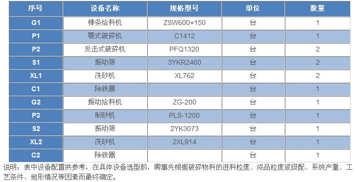 500t/h---石灰石(白云巖)類巖石的砂石骨料生產(chǎn)工藝設(shè)備配置表