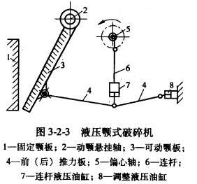 (3)液壓調(diào)整。近年來還有在此位置安裝液壓推動缸來調(diào)整排礦口的,見圖3-2-3液壓頰式破碎機(jī)中的調(diào)整液壓油缸8。