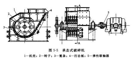 錘式中碎機有很多形式,但是我國過去使用的主要是承擊式破碎機(如圖5-5所示)。